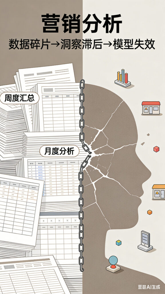 传统营销反馈周期以周/月计,发现问题时机会早已流失。数据散落在不同门店、系统,无法形成统一用户画像;即便有数据,也缺乏实时分析工具,导致”报表一堆,洞察为零”。
